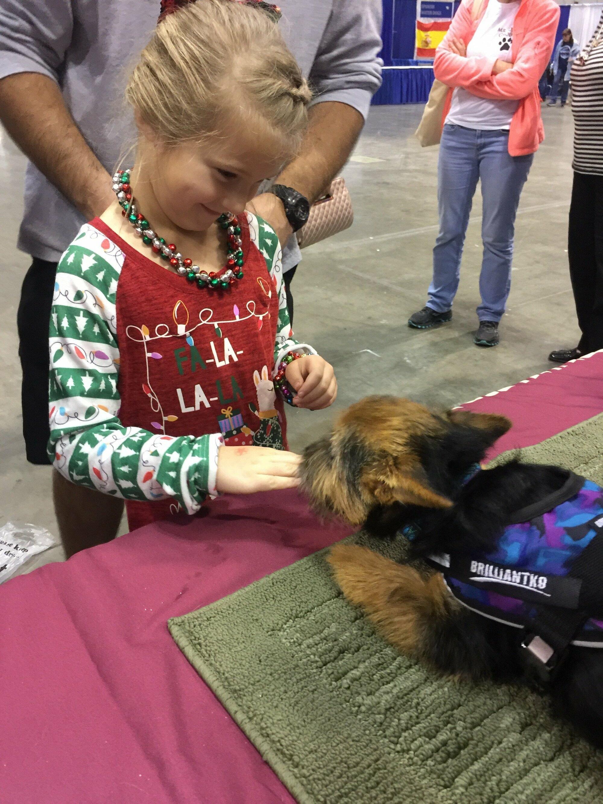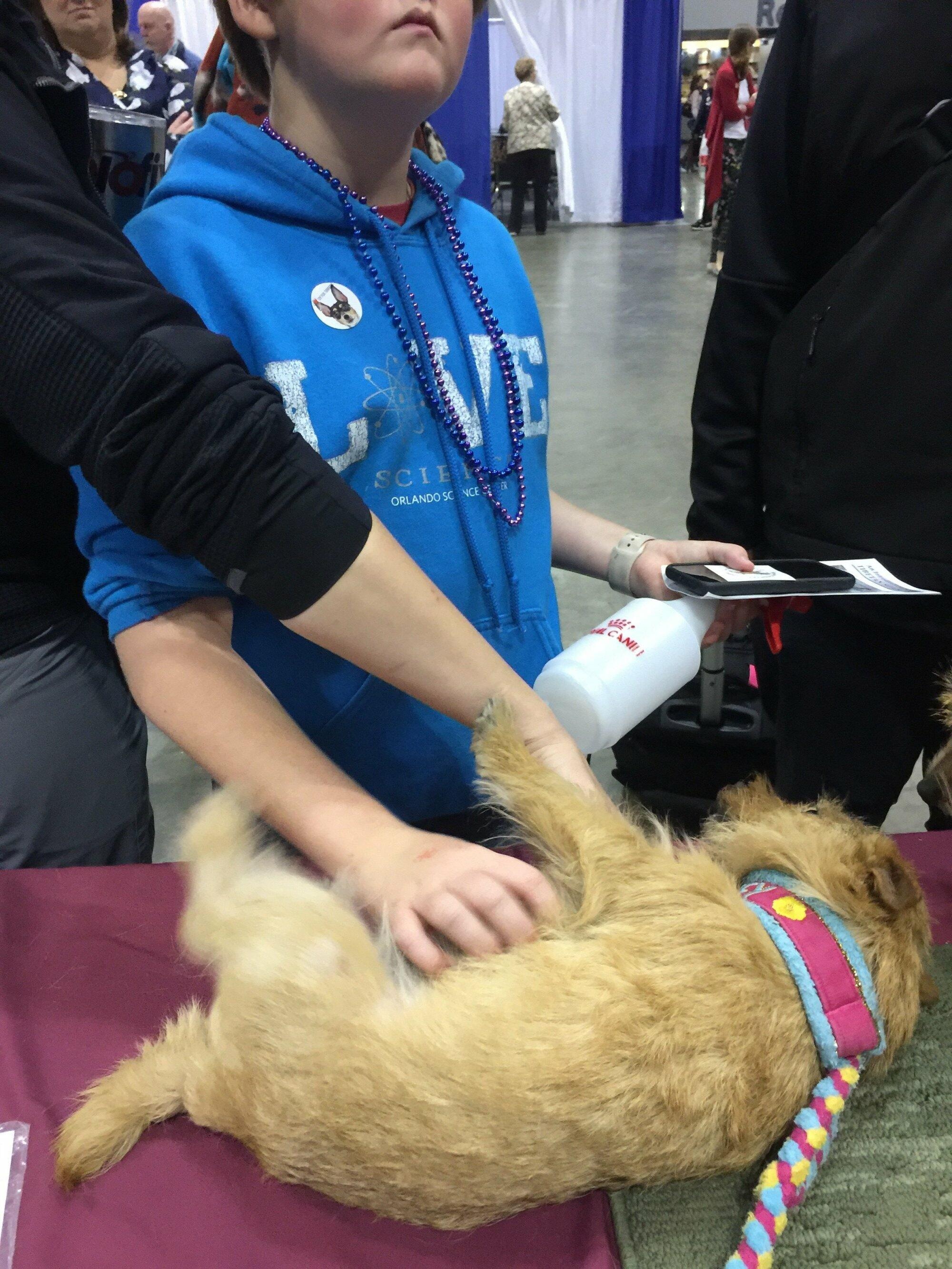 The NTCA participated in AKC’s Meet the Breeds in Orlando, FL on December 14 & 15, 2019. It is part of the annual AKC National competition which includes conformation, the top agility and obedience invitees, dock diving, NOH finals and much more. About 11,000 dogs participated in the multiday events. A big thank you to Judy Laffey for joining me to man the booth for two days, with her sweetie Meadow, who got along with my veteran Beatrice. Thanks also to Club members Blair Kelly, with Siri and Mandy (between her agility runs), Lee Little with Billie and Pizza, Deb Lang with Chaucer and Trea, Joan Krantz and Jack, Cathy Rogers and Ceily, Jim & Jennifer DeMason with Bentley, and volunteer Norma Braun with Keeper. The dogs enjoyed the admiration, gave lots of kisses, but did NOT like that spiky Florida grass!!