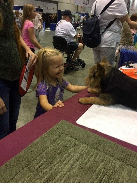 We unveiled our new booth décor, created by our design guru NTCA member Paula Smith, which received numerous compliments. Months of planning goes into this production, and many thanks go to NTCA members Judy Laffey (Meadow), Nicky Conroy (Mr. Finn), Mary Mang (Lilly), Lark Shlimbaum (Wylie and Rascal), Amelia Smith (Diesel), Betty McDonnell (Hazel), and two new volunteers David Michaud and Michael Heaner, with Harry and Louis.